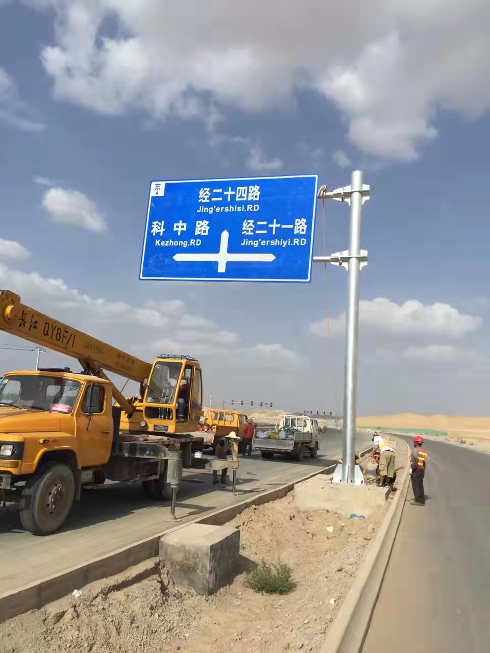 ①標(biāo)志板:寬3000x高2000mm,立桿:Φ219x8x7500mm,橫梁:Φ114x5x3500mm,立桿法蘭:500x500x16mm,地腳螺栓:8-M24x1250mm,底座法蘭:500x500x10mm(內(nèi)蒙古、吉林常用);